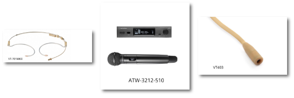該系統配置包括ATW-R3210接收機、ATW-T3201盒式和ATW-T3202手持發射器。