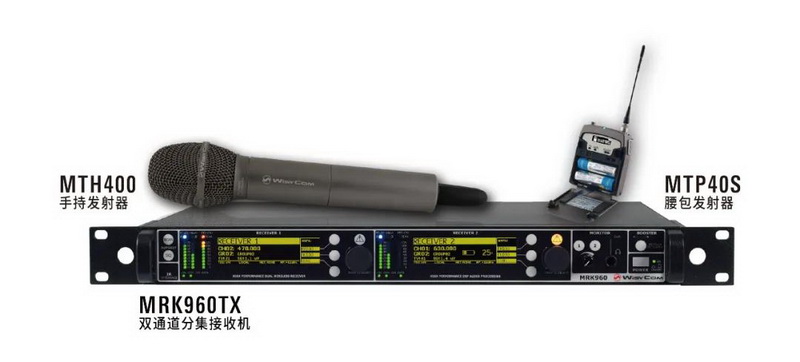 WisyCom的無線接收機MRK960工作頻率為470-840MHz,帶寬達到370MHz,通過專用軟件可以對場地進行掃頻,規避一些類似內部設備干擾、數字開路電視干擾等外部干擾以外,還能保證有足夠的頻率空間來計算和設置無線話筒的頻率。