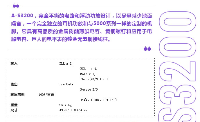 A-S2200和A-S3200都采用了5000系列的PC Triple C、純銅連續晶體結構、內置音箱接線和22000uF/63V電解電容。