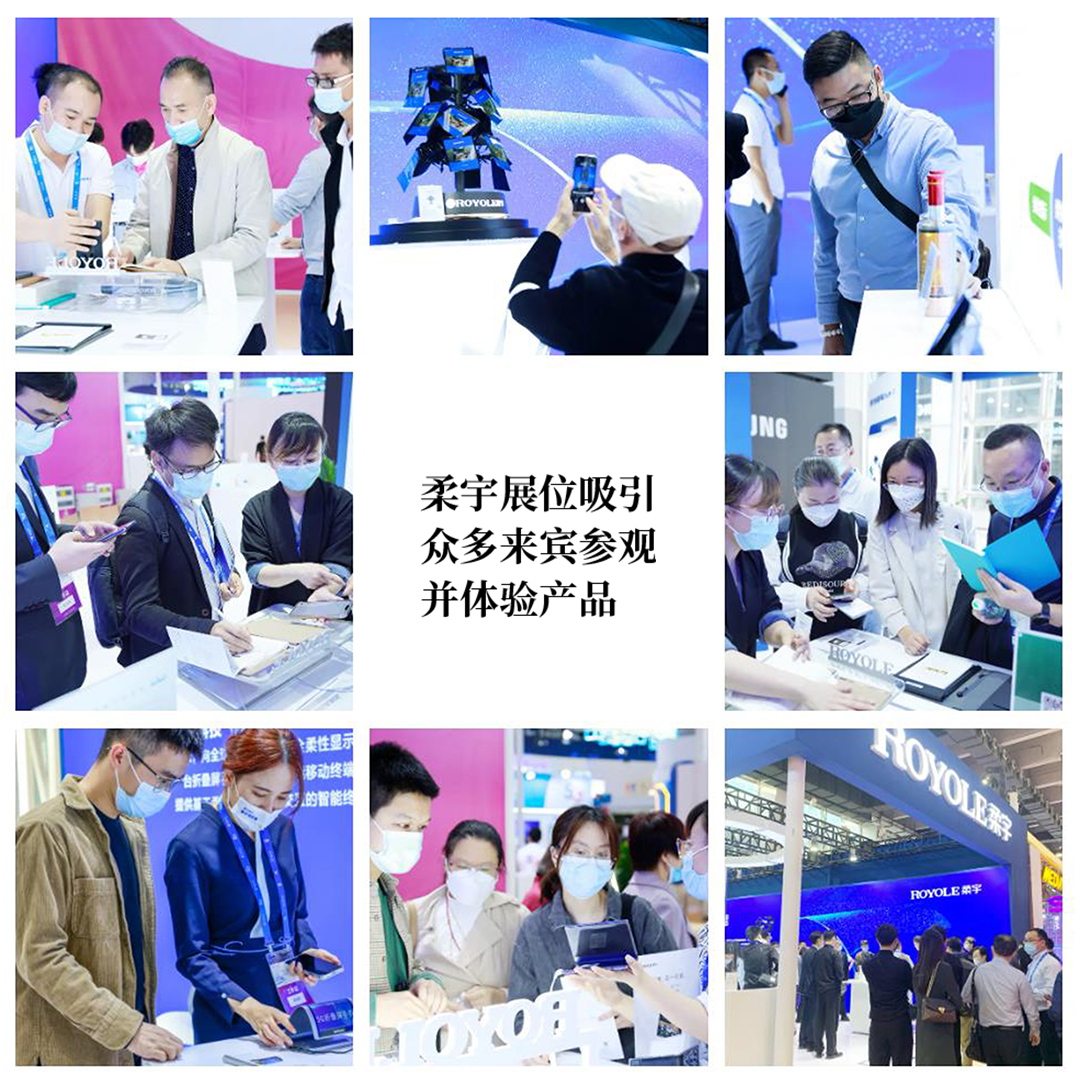 在博覽會現場,能夠看到柔宇帶來的眾多柔性電子創新產品:折疊屏手機FlexPai 2、智能手寫本RoWrite 2、RoMeeting智能會議銘牌系統、柔樹、柔性車載顯示解決方案等……吸引了眾多參觀者圍觀。